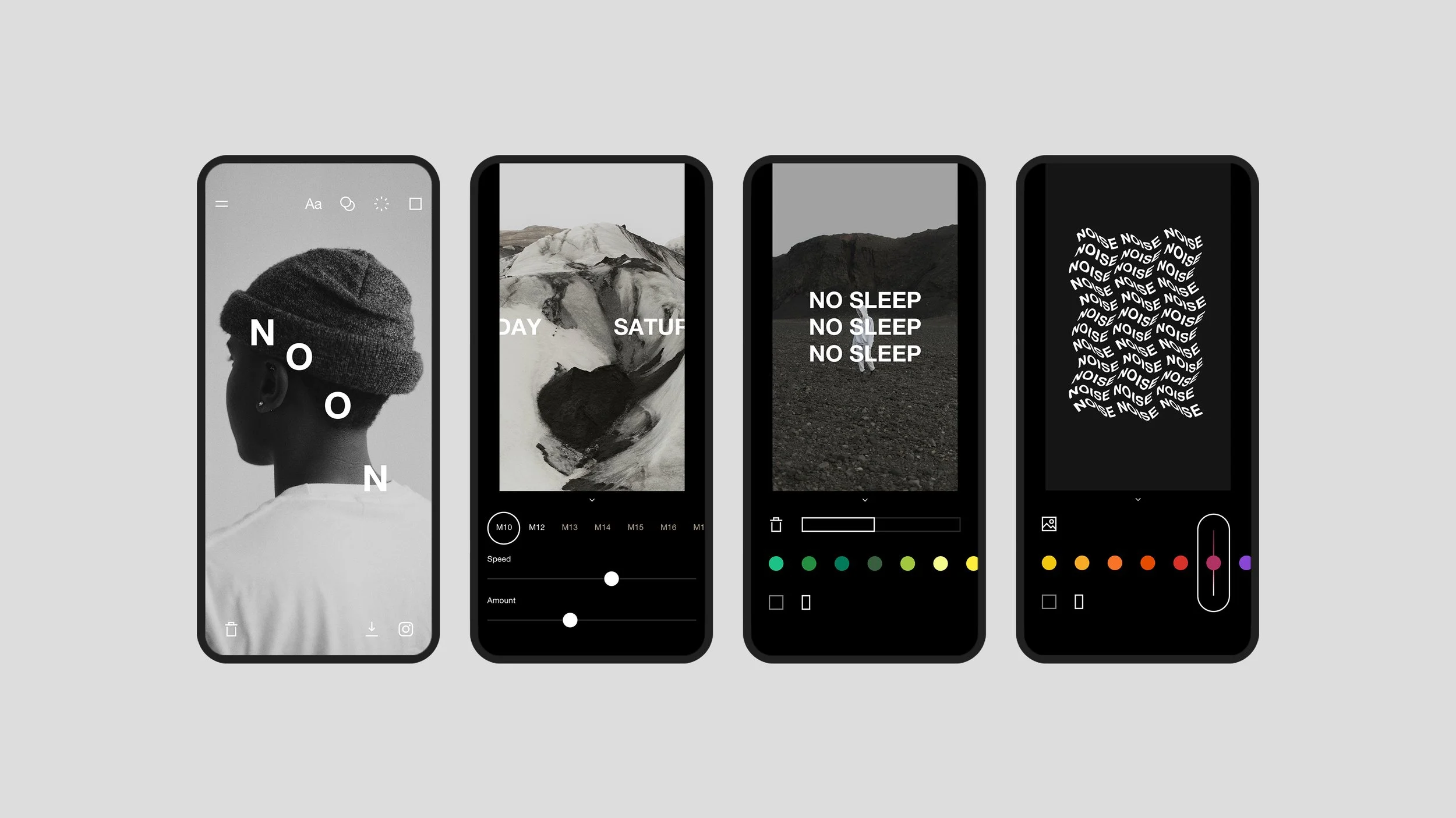 In 2018 I started a personal Instagram account to share my design experiments. Playing around with typography eventually led to an idea for an app called TypeLoop. The app offered a variety of customizable motion presets and effects for creating unique text animations for social media. The app was sold in 2020.